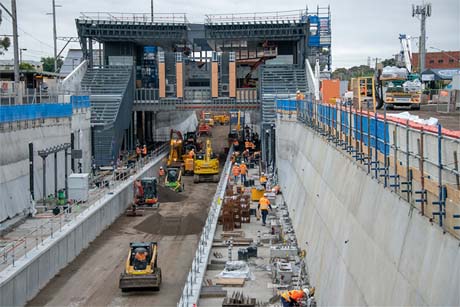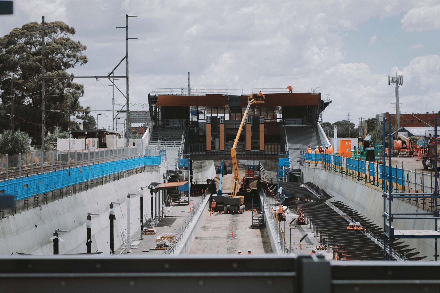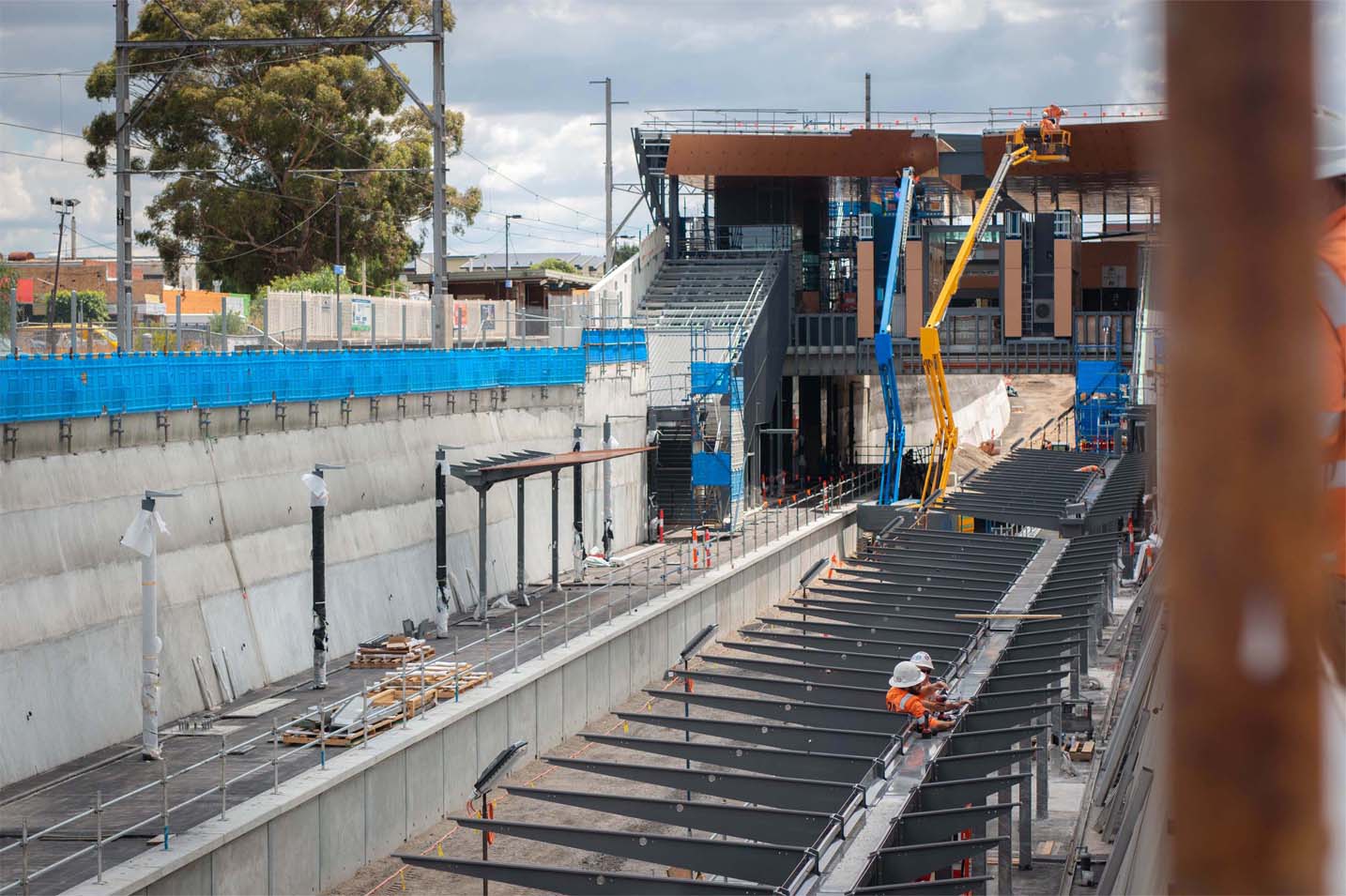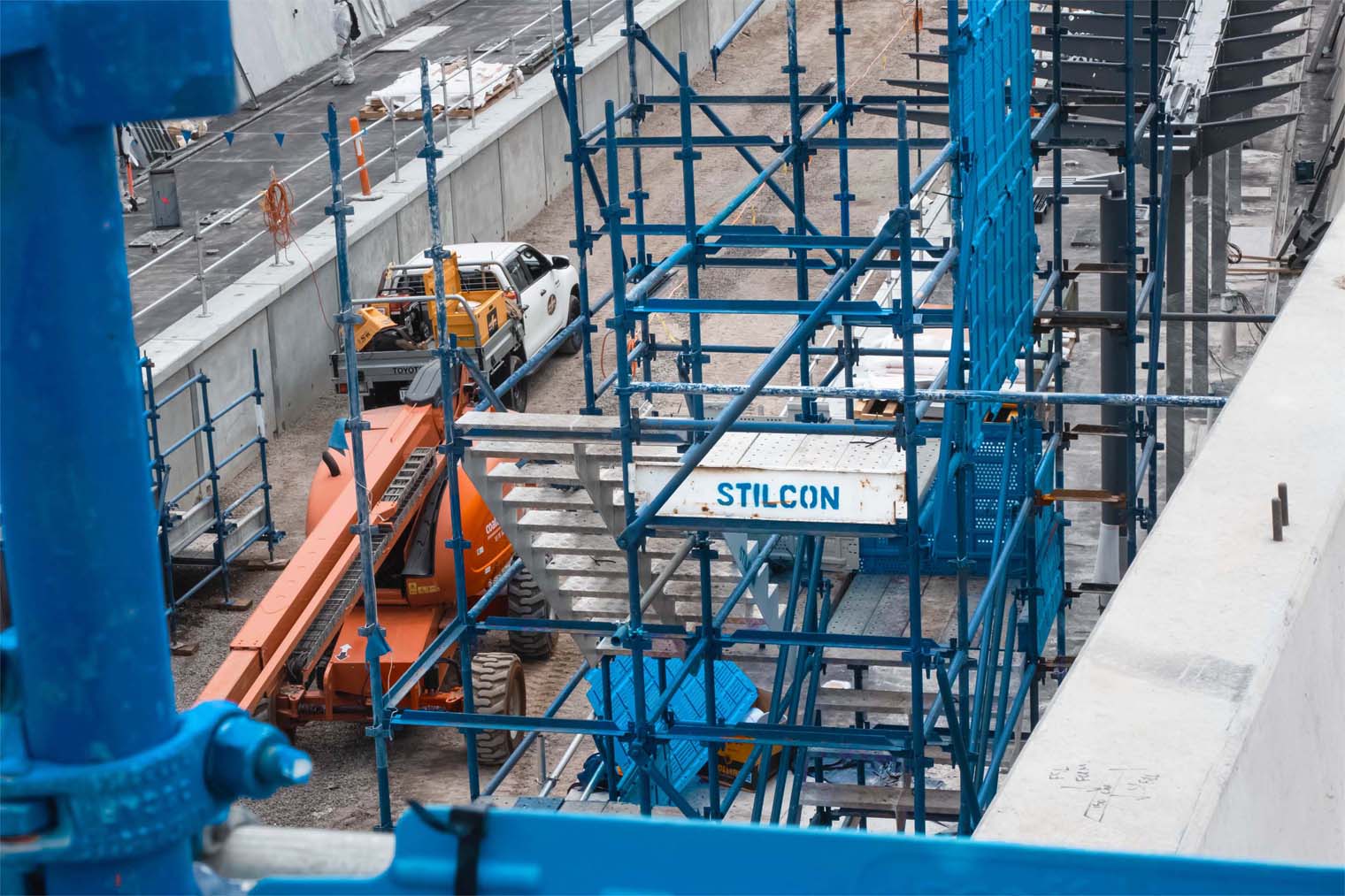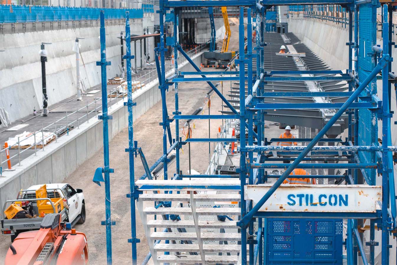 The Glenroy Station project involved the removal of the level crossing and lowering the rail line underground. The client, NWPA, has managed this project over a two-year period which also includes a new Glenroy Station. It was a 14-metre-deep cut (with a distance of 1.2km underground). Stilcon Industrial Services provided drop access scaffold into the cut and bridge structure access scaffolds across the cut.