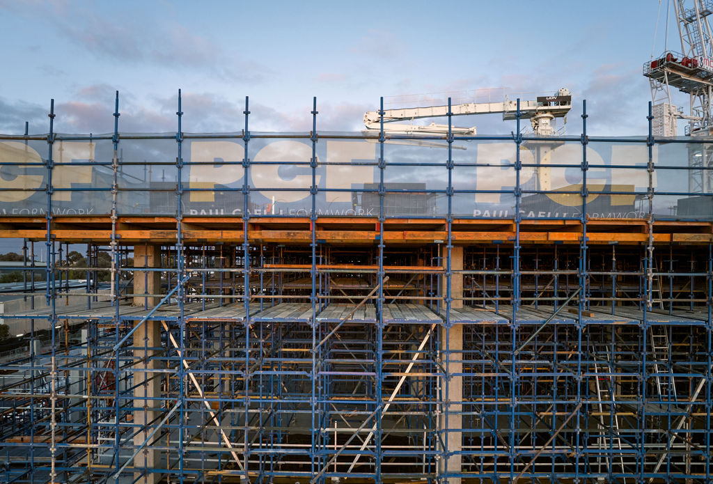 Beyond erecting scaffolds, we are raising the standards of efficiency, innovation, and safety. Our in-house team has ingeniously designed and engineered handrail systems for the exterior of Super T girders, enhancing on-site productivity and safety. By integrating handrail installation into the project’s design phase, we prioritise time and cost savings, risk reduction, and seamless access to working platforms. Safety remains paramount in our encapsulation solutions, carefully considered to facilitate finishing trades, protect workers, and prevent debris from falling onto lower levels.