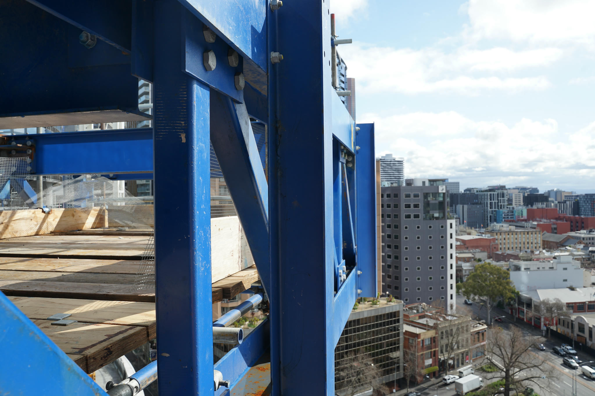 Through cross-industry expertise, we successfully transitioned lift shaft construction offsite. Fabrication, painting, and assembly of the lift cage, steel structure, and cladding took place at our facilities. Each completed 30-tonne lift shaft underwent encapsulation, ensuring protection during transport and on-site installation.